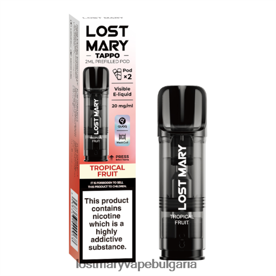 Предварително напълнените шушулки с аромат на тропически плодове Lost Mary tappo са проектирани да се използват с комплекта предварително напълнени капсули Lost Mary tappo. тези капсули се пълнят с до 2 мл 20 мг никел сол е-течност, с разнообразие от 15 различни вкуса, от които да избирате. всяка капсула осигурява до 600 впръсквания и осигурява плавен удар в гърлото, идеален за mtl (от устата към белите дробове) изпаряване. проектирани с най-новите quaq mesh намотки, те предлагат отличен вкус навсякъде.